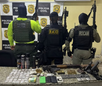 Durante a ação, policial, armas de fogo, drogas e outros materiais ilícitos foram apreendidos no local. Ao todo foram apreendidas, duas pistolas com carregadores e munições, um revólver e uma escopeta calibre 12, além de maconha, crack e cocaína.