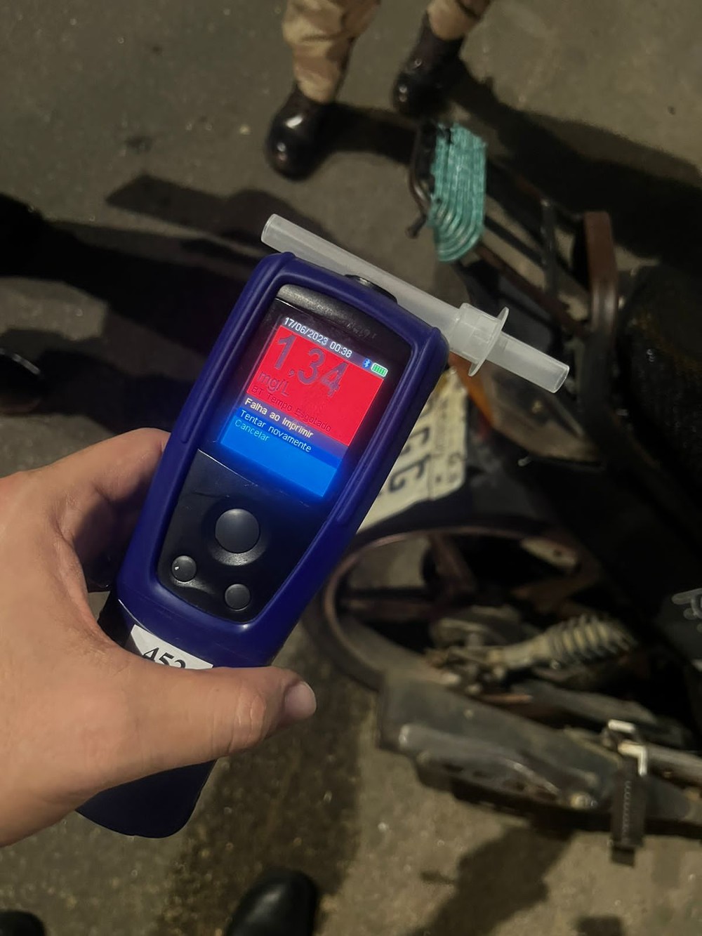 Um outro motociclista registrou 1.34 mg/l no teste de alcoolemia, o que configura crime de embriaguez ao volante.