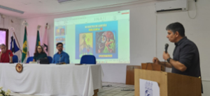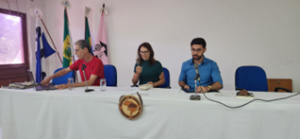 1ª mesa de debates. Kydelmir Dantas e Wescley Dutra com coordenação da diretora Natividade Praxedes.