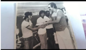 Dantas Júnior recebendo um Moto-rádio do gerente da caixa econômica Federal Roberto por ser o artilheiro do primeiro do campeonato de bairros de Mossoró patrocinado pela Rádio Difusora.