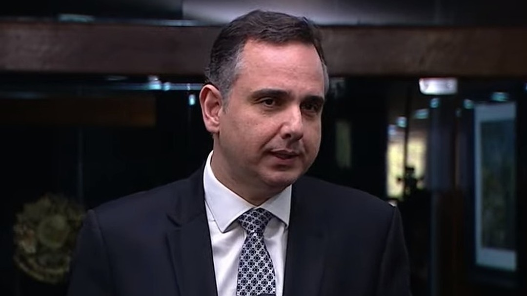 O presidente do Senado, Rodrigo Pacheco, durante entrevista nesta terça-feira (25) — Foto: Reprodução/TV Senado