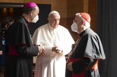 O Papa, que é o bispo de Roma, deslocou-se a um hotel da capital italiana para discursar, de improviso, na reunião da CEI, com o tema ‘Proclamar o Evangelho em tempo de renascimento – Dar início ao caminho sinodal’.