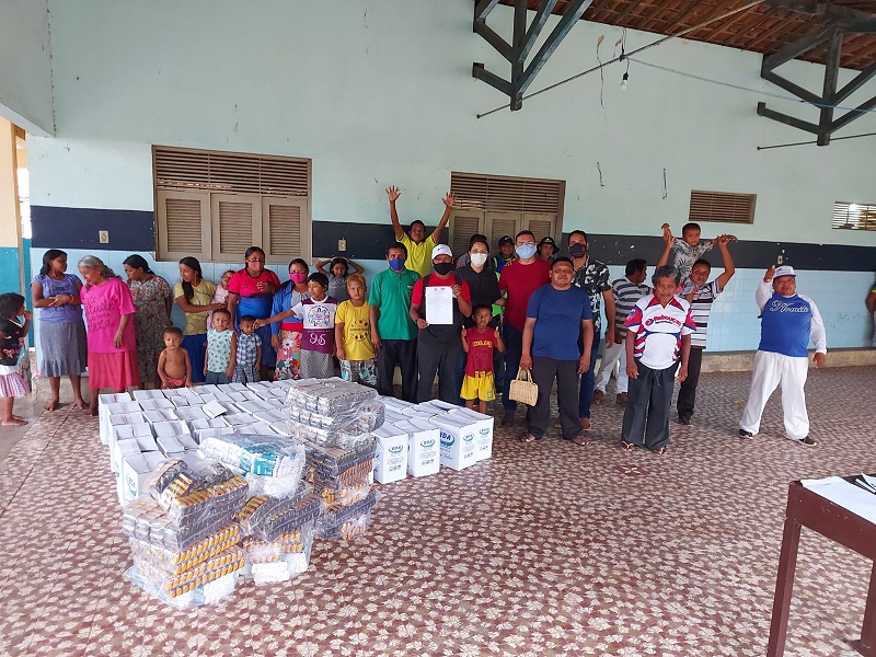 Além das cestas básicas, foram doados sabonetes para higiene pessoal para 21 famílias indígenas venezuelanas da etnia Warao, que estão no município. Ao todo, são 72 Warao abrigados em prédios cedidos pelo Lar da Criança Pobre.