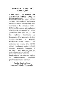 InícioEditaisPEDIDO DE LICENÇA DE ALTERAÇÃO - A POLIMIX CONCRETO LTDA EditaisServiço PEDIDO DE LICENÇA DE ALTERAÇÃO – A POLIMIX CONCRETO LTDA By Aysa Lorena 30 de janeiro de 2026 0 2 Compartilhado FacebookTwitterPinterestWhatsAppCopy URL Compartilhado FacebookTwitterPinterestWhatsAppCopy URL Artigo anteriorUern registra recorde de inscrições no Sisu e se consolida entre as universidades mais procuradas do NordestePróximo artigoNOTAS DA REDAÇÃO Aysa Lorena NOTÍCIAS RELACIONADAS Editais CONDOMINIO VERONIQUE – CONSELHO ADMINISTRATIVO – EDITAL 01/2026 19 de janeiro de 2026 Editais EDITAL DE CONVOCAÇÃO DA ASSEMBLEIA GERAL EXTRAORDINÁRIA – A.G.E. 19 de janeiro de 2026 Editais EDITAL DE CONVOCAÇÃO DE ASSEMBLEIA GERAL ORDINÁRIA (AGO) – ASSOCIAÇÃO CULTURAL ESPORTE CLUBE BARAÚNAS 12 de dezembro de 2025 DEIXE UMA RESPOSTA Cancelar resposta Comentário: Por favor digite seu comentário! Nome:* Por favor, digite seu nome aqui E-mail:* Você digitou um endereço de e-mail incorreto! Por favor, digite seu endereço de e-mail aqui Site: Salve meu nome, e-mail e site neste navegador para a próxima vez que eu comentar. Captcha verification failed! Falha na pontuação do usuário captcha. Por favor, entre em contato conosco! - Advertisment - Notícias Recentes NOTAS DA REDAÇÃO 30 de janeiro de 2026 Uern registra recorde de inscrições no Sisu e se consolida entre as universidades mais procuradas do Nordeste 29 de janeiro de 2026 Mercado de trabalho do RN fecha 2025 com saldo positivo de quase 16 mil empregos formais 29 de janeiro de 2026 Emater em Mossoró mobiliza coordenadores dos bancos de sementes para dar início à distribuição 29 de janeiro de 2026 RN tem 127 cidades em situação de emergência pela seca, maior número do Nordeste 29 de janeiro de 2026 Carregar mais