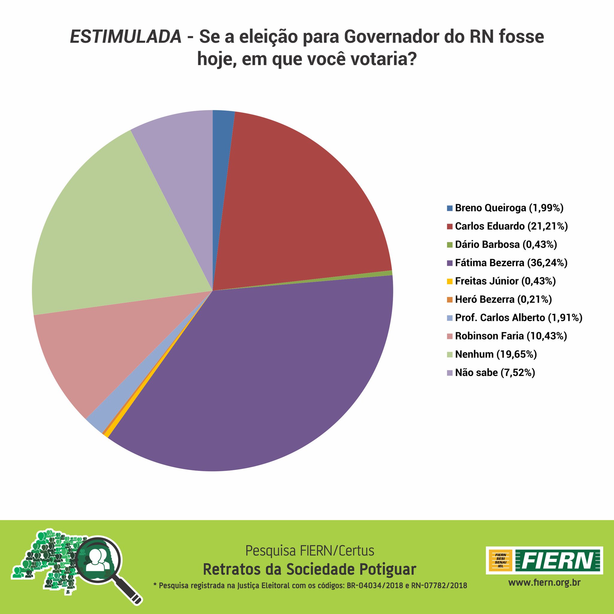 Foram entrevistados 1.410 eleitores maiores de 16 anos em 8 regiões do RN. A margem de erro 3% e intervalo de confiança de 95%.
