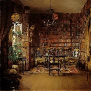 (Pintura A biblioteca de Thorval Boeck Sun, de Harriet Backer)