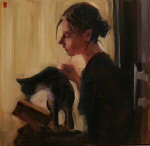 (Pintura “Moça e gato”, de Sasha Hartslief)