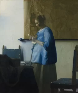 (Mulher de azul lendo uma carta, pintura de Johannes Vermeer)