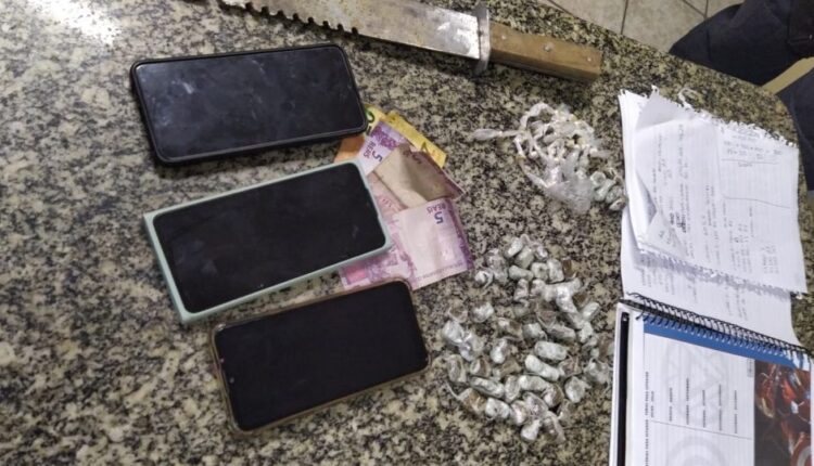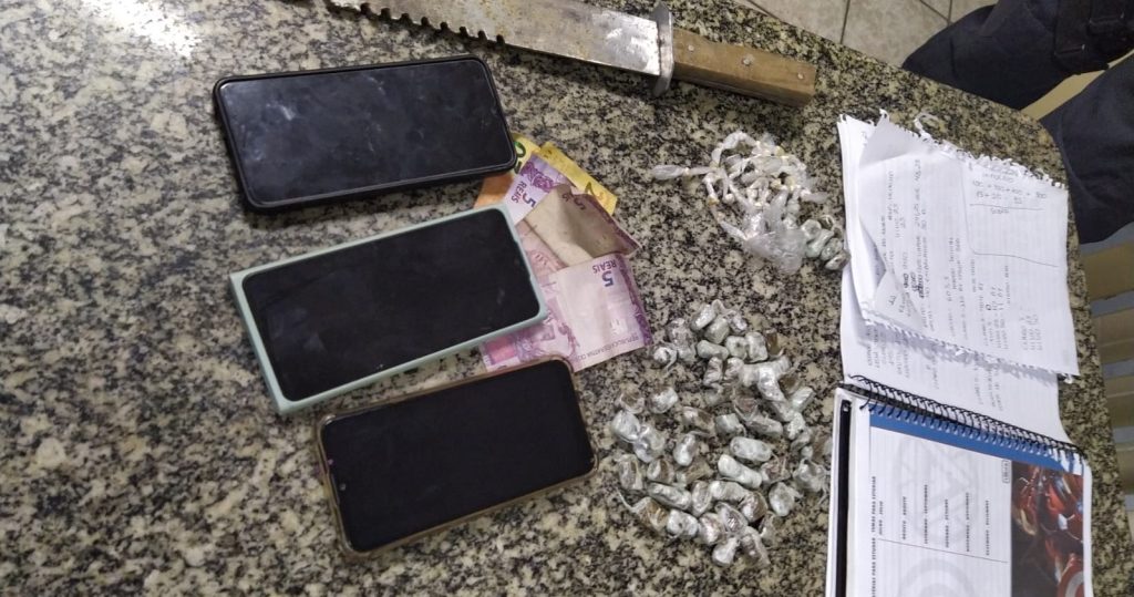 Foi realizada uma abordagem no local e encontradas 39 pedras de crack, 6 trouxinhas de maconha e 49 porções embaladas, de acordo com a PM.