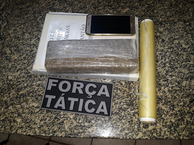 Segundo informações da polícia, o acusado estava com um tablete de maconha, pesando 800 gramas e papel filme.