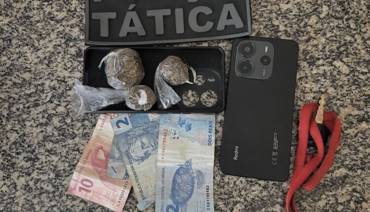 A ação teve início durante patrulhamento ostensivo da Força Tática na região, quando a guarnição recebeu uma denúncia indicando que um indivíduo estaria realizando tráfico de drogas no bairro.