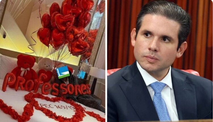 Ao postar uma foto que simulava um quarto romântico, com pétalas de rosa e balões em forma de coração, o deputado pretendia celebrar a aprovação de uma proposta voltada à valorização dos professores e servidores públicos. Mas o efeito foi o oposto: o conteúdo virou motivo de piada e constrangimento.