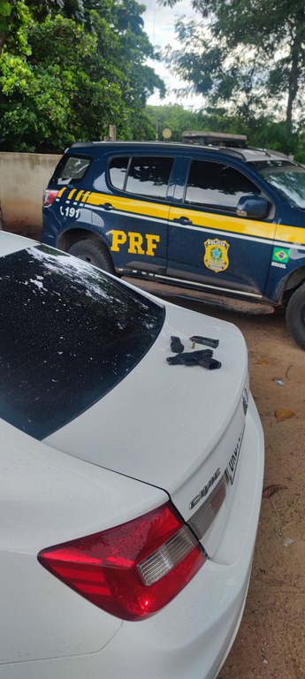 Ao realizarem vistoria no interior do automóvel, a equipe PRF encontrou uma pistola calibre .9mm carregada e um carregador extra, embaixo do banco do motorista. Indagado se possuía autorização para portar arma de fogo, o homem respondeu que não.