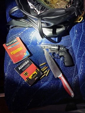 A suspeita era passageira de um ônibus interestadual que fazia a linha São Luís/MA – Natal/RN. Durante a fiscalização, os policiais encontraram sob sua posse uma faca do tipo “peixeira” de 30 cm, um simulacro de arma de fogo e seis munições de airsoft.