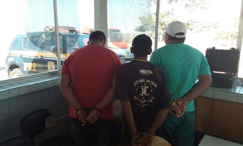 Os homens foram flagrados por uma equipe de ronda, que fazia patrulhamento pela BR, colocando estacas de concreto sobre o compartimento de carga de uma Saveiro.