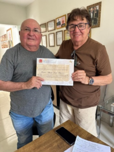 Professor e acadêmico Carlos Alberto Lima Filgueira, sendo homenageado hoje pela ACJUS pelos anos de contribuição a nossa instituição. Nós da diretoria e representantes do colegiado, agradecemos a valiosa participação do aludido amigo e confrade.