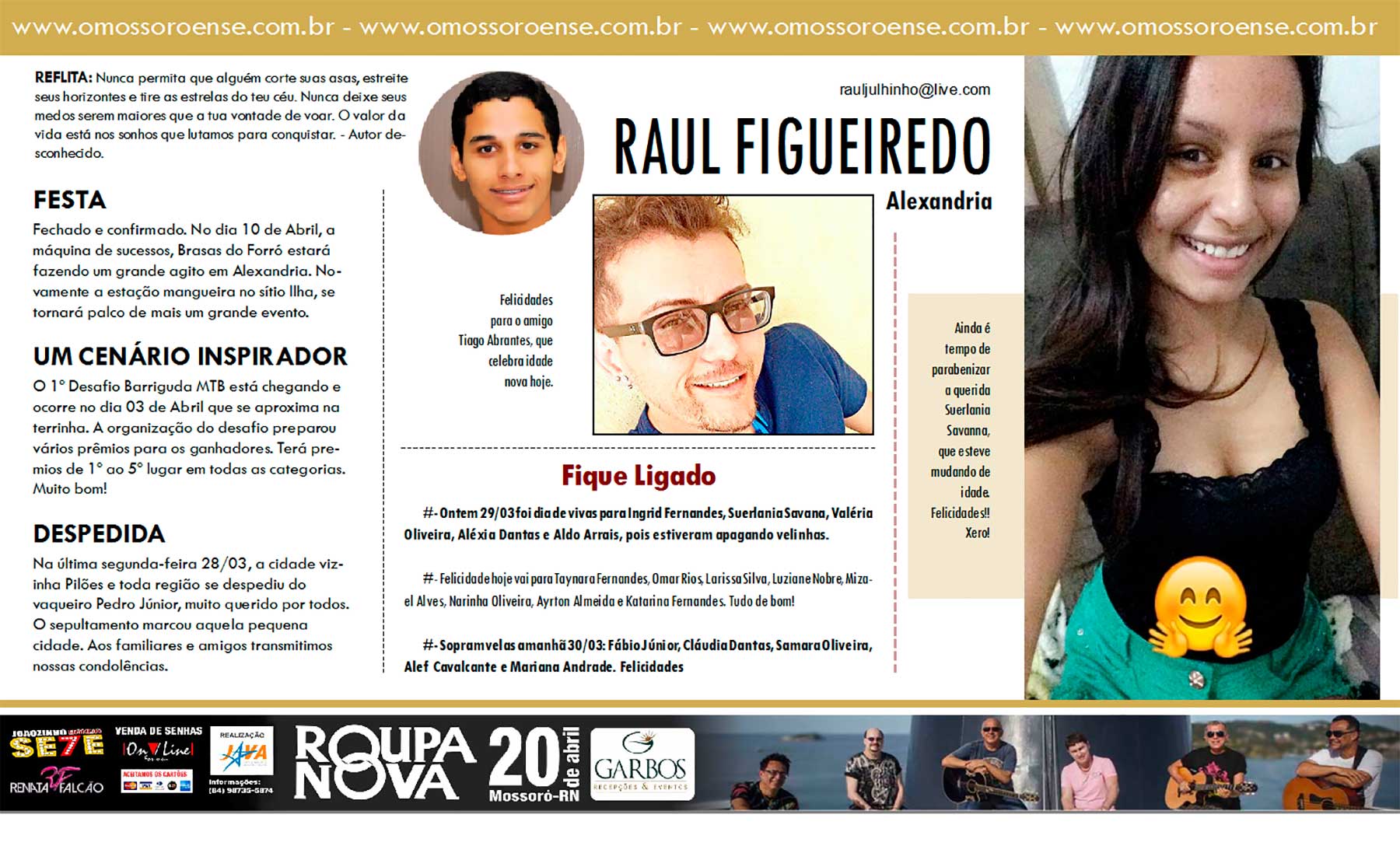 #- Ontem 29/03 foi dia de vivas para Ingrid Fernandes, Suerlania Savana, Valéria Oliveira, Aléxia Dantas e Aldo Arrais, pois estiveram apagando velinhas.