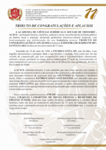 TRIBUTO DE CONGRATULAÇÕES E APLAUSOS