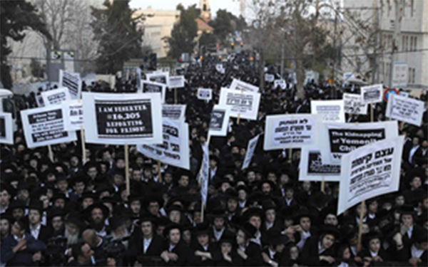 A comunidade judia ultraortodoxo saiu as ruas organizando um dos maiores protesto de sua história recente. Jerusalém histórica viu milhares de jovens dizerem não ao serviço militar obrigatório e o perigo da perversão que ele representa para os jovens, segundo eles.