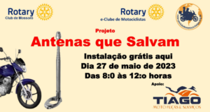 Numa boa de reunião, o Rotary tomou a decisão de atuar no sábado, 27 de maio, ajudado e doando antenas de proteção para motoqueiros. O Rotary sempre pensando na sociedade e no bem-estar do povo. Que servia de exemplo às autoridades constituídas. Parabéns aos companheiros do Rotary.