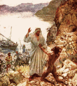 Há alguns minutos atrás, Jesus tinha apaziguado a tempestade e agora se deparava com outra luta espiritual, a legião que dominava o Gadareno. Certamente, Cristo, criador de tudo, junto a Deus pai, lembrou de Adão que foi criado no mais alto nível moral, de princípios e santidade. E agora se deparava com a sua criação no mais baixo nível, possesso pela casta maligna, em completa miséria.