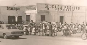 Era assim que a gente comprava o gás butano, em 1982. Tinha que acordar de madrugada.