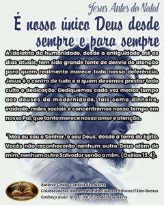 Portanto, o natal somos nós, quando acreditamos, aceitamos e confiamos no seu nascimento (do Cristo), e dele nos aproximamos para seguir seus passos e os seus conselhos. E assim, encontraremos paz em nossa consciência. Visto que, Ele nasceu e deu a sua vida para nos redimir do pecado. Por outro lado, cabe-nos louvá-lo, amá-lo e proclamar sua salvação. Sem jamais esquecer, que o maior fundamento proclamado pelo Rei Cristo Jesus foi o amor ao próximo e o socorro dos que sofrem, como anuncia o livro do profeta Oseías, ao dizer: “semeai para vós outros em justiça, ceifai segundo a minha misericórdia; arai o campo de pousio; porque é tempo de buscar ao Senhor, até que ele venha, e chova a justiça sobre vós” (Os 10.12).
