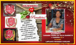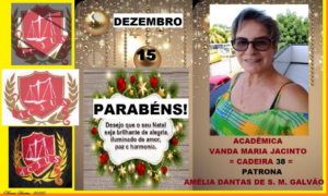 O nosso próximo acontecimento será dia 22/01/24 – 17h30 – no auditório da Faculdade Católica do RN, sessão da saúde um necrológio ao acadêmico Sátiro Cavalcanti Dantas, falecido em 27/11/23, quando serão oradores os acadêmicos Charles Lamartine de Sousa Freitas (50) e Francisco Marcos de Araújo (29). Feliz Natal e Feliz Ano Novo!