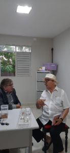 O presidente de honra em visita a sede da academia de ciências jurídicas e socias de Mossoró (ACJUS). Na recepção o sempre receptivo, o Dr. Wellington Barreto que é presidente da academia. A sede da ACJUS, é um lugar para conversar, pensar, rir e pesquisar. Emocionar – se. Tudo o que Elder com seus 89 anos de experiência, mas gosta. Tudo isso ele encontra no PCAMMM.