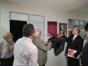 descerramento da placa de inauguração da biblioteca Pe. Sátiro.