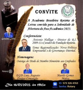 CONVITE ESPECIAL DA ABROL – Academia Brasileira Rotária de Letras