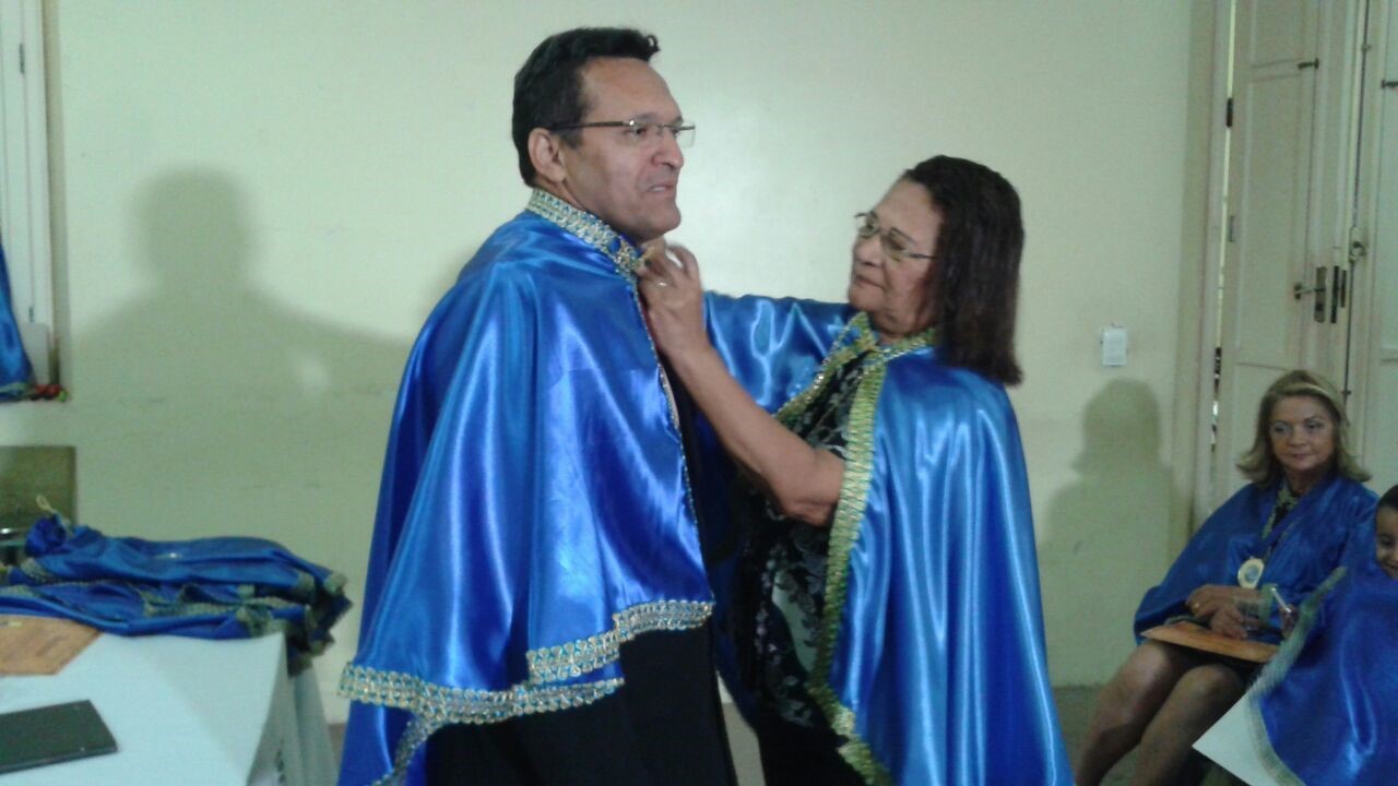 Lembrança de minha posse na ASCRIM. A Dr. Taniama colocando vestimenta como razão da posse.