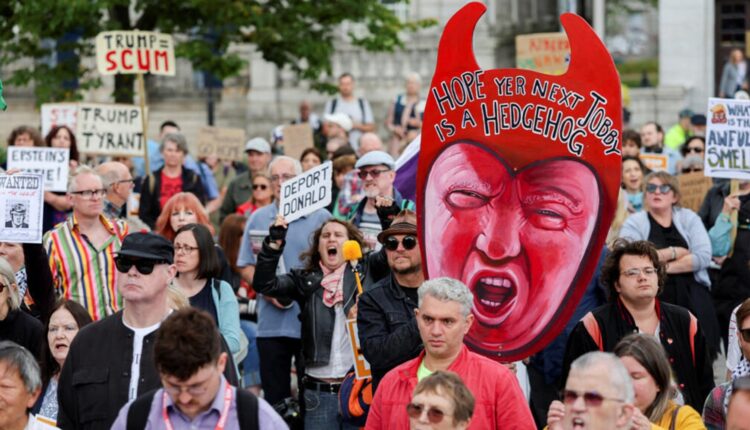 Manifestantes protestam contra visita de Trump à Escócia, marcada por golfe e negociações comerciais