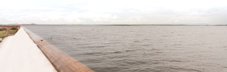 A barragem Armando Ribeiro Gonçalves, maior reservatório do RN, está com 1.509 bilhões de metros cúbicos, equivalentes a 63,63% da sua capacidade total, que é de 2,37 bilhões de m³.