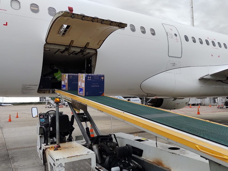 Chegaram ao Aeroporto Internacional de São Gonçalo do Amarante nesta tarde 26.910 doses da Pfizer. Outras 13.200 da Coronavac/Butantan, estão previstas para chegar por volta das 21h para imunização de trabalhadores da indústria e da limpeza, além do escalonamento por idade feito de acordo com cada município.