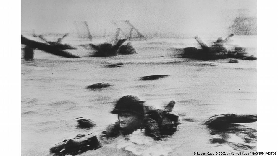 Robert Capa, nascido em Budapeste em 1913 de uma família judia, teve que fugir dos nazistas. De Berlim, ele rumou a Paris, de onde foi diversas vezes para a Espanha a trabalho. Em 1939, ele entrou nos Estados Unidos com visto de visitante e fez valer seus bons contatos com jornalistas, fotógrafos e escritores para conseguir trabalho. Robert Capa, que se chamava, na verdade, Endre Friedmann e cujo célebre pseudônimo foi assumido durante o exílio em Paris, não foi obviamente o único fotógrafo de guerra da Segunda Guerra Mundial. Mas ele era considerado particularmente corajoso e ambicioso – inclusive dentro das próprias tropas aliadas. No livro Slightly Out of Focus (Ligeiramente Fora de Foco), ele relata – de forma altamente ficcional, como ele mesmo descreve – sobre sua atuação na Segunda Guerra Mundial, mas também sobre seus medos e motivações. Capa queria fotos exclusivas – e queria, a todo custo, estar presente na invasão dos Aliados como repórter fotográfico. E embora fosse um cidadão húngaro de um país aliado da Alemanha nazista, os militares americanos o aceitaram no pequeno círculo de repórteres do Dia D.