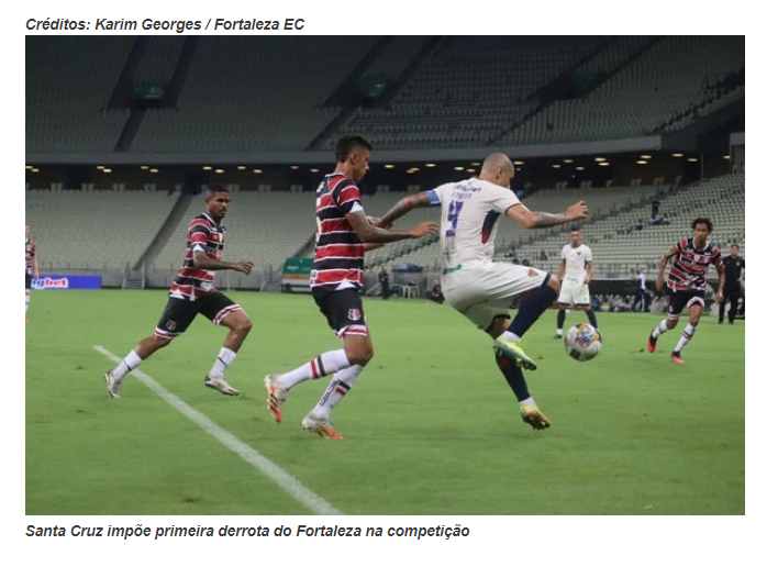 Na noite desta terça-feira (23), o Santa Cruz enfrentou o Fortaleza no estádio Castelão, pela 5ª rodada da Copa do Nordeste. O tricolor pernambucano venceu o anfitrião por 1 a 0, que está na 3ª posição do Grupo B com oito pontos, mas permanece como lanterna do Grupo A, com 3 pontos.