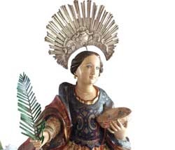 Santa Luzia nasceu em Siracusa em 281 da era cristã, descendente de uma família patrícia e abastarda. Sua mãe, Eutíquia, era uma nobre matrona que a educou na fé cristã. Naquela época, o cristianismo que ainda estava em perseguição, ia triunfando lentamente sobre o mundo pagão. Mas era uma época em que defender a fé, caracterizava-se como risco mortal.