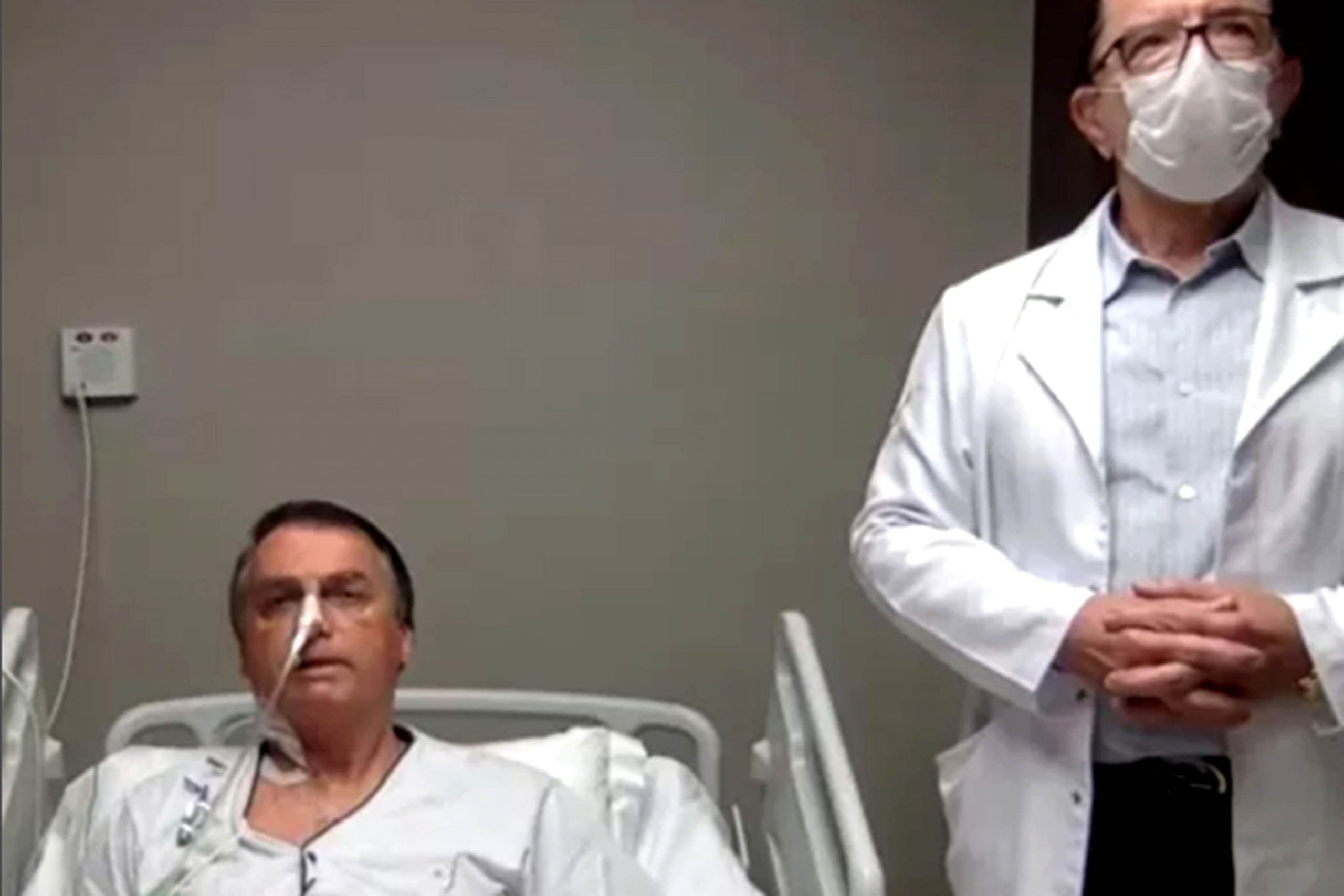Nesta quinta-feira (15), até deu entrevista para Rede TV!, via Internet, ladeado pelo cirurgião Antonio Luiz Macedo. O filho vereador, Carlos Bolsonaro, e a primeira-dama Michelle, o acompanham. O boletim da equipe médica diz ser pouco provável a necessidade de nova cirurgia. Mas a alta hospitalar ainda não tem previsão.