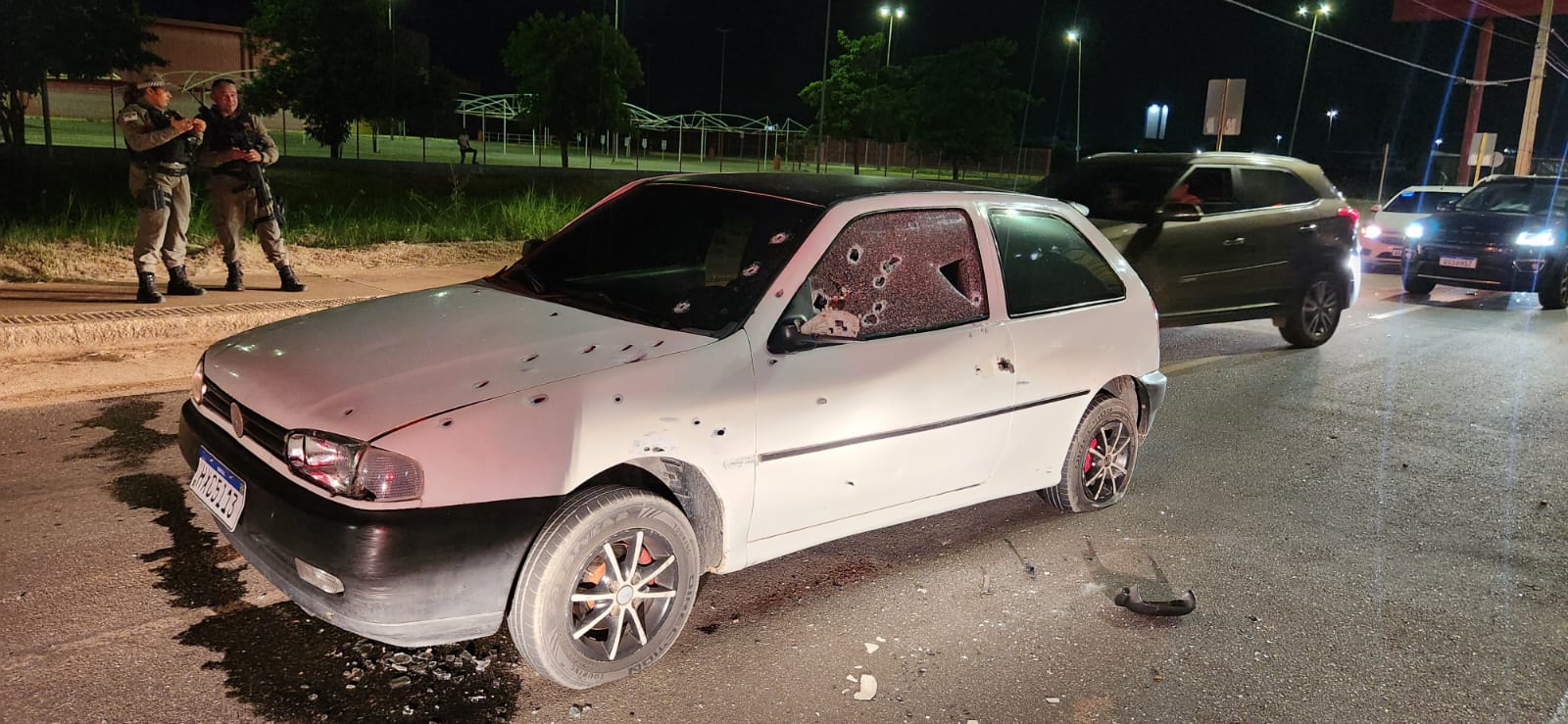 Segundo informações repassada pela PM, cerca de três pessoas trafegavam em um carro do tipo Gol, de cor branca e foram interceptados por um Fiat Vivace, identificado com adesivo de Uber. Os ocupantes do Fiat iniciaram os disparos do lado do motorista do Gol. As vítimas conseguiram sair do veículo pela porta do passageiro e fugiram.
