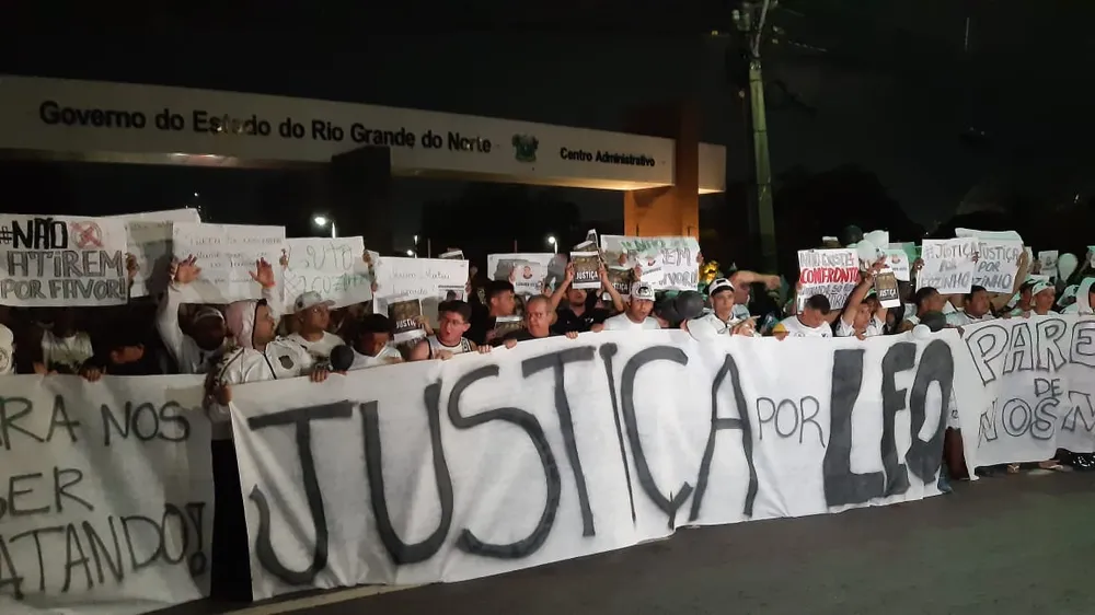 Membros de uma torcida organizada do ABC Futebol Clube e familiares realizaram um protesto na noite desta segunda-feira (18) na BR-101, em frente ao Centro Administrativo do Estado, para cobrar justiça pela morte de Leonardo Lucas Silva de Carvalho, de 26 anos. Ele foi vítima de um disparo de arma de fogo na cabeça durante confusão entre torcidas no bairro Ponta Negra, na Zona Sul de Natal.