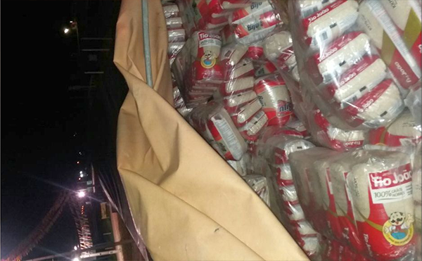Na carreta foram encontradas cerca de 25 toneladas de arroz das marcas Biju e Tio João, distribuídas em fardo, sem qualquer comprovação de origem lícita. Durante a ocorrência, os três envolvidos também apresentaram versões conflitantes.