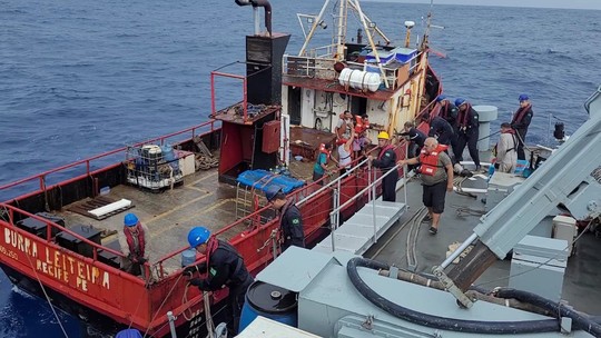 O navio chegou à área de busca por volta das 6h desta quinta-feira e iniciou o resgate dos tripulantes.