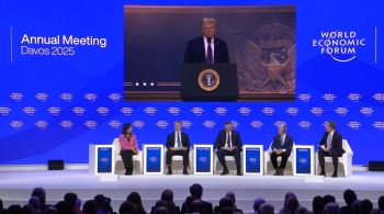 O presidente dos Estados Unidos, Donald Trump, responde a perguntas em painel no Fórum Econômico Mundial em Davos. O presidente dos Estados Unidos, Donald Trump, responde a perguntas em painel no Fórum Econômico Mundial em Davos. • Reprodução