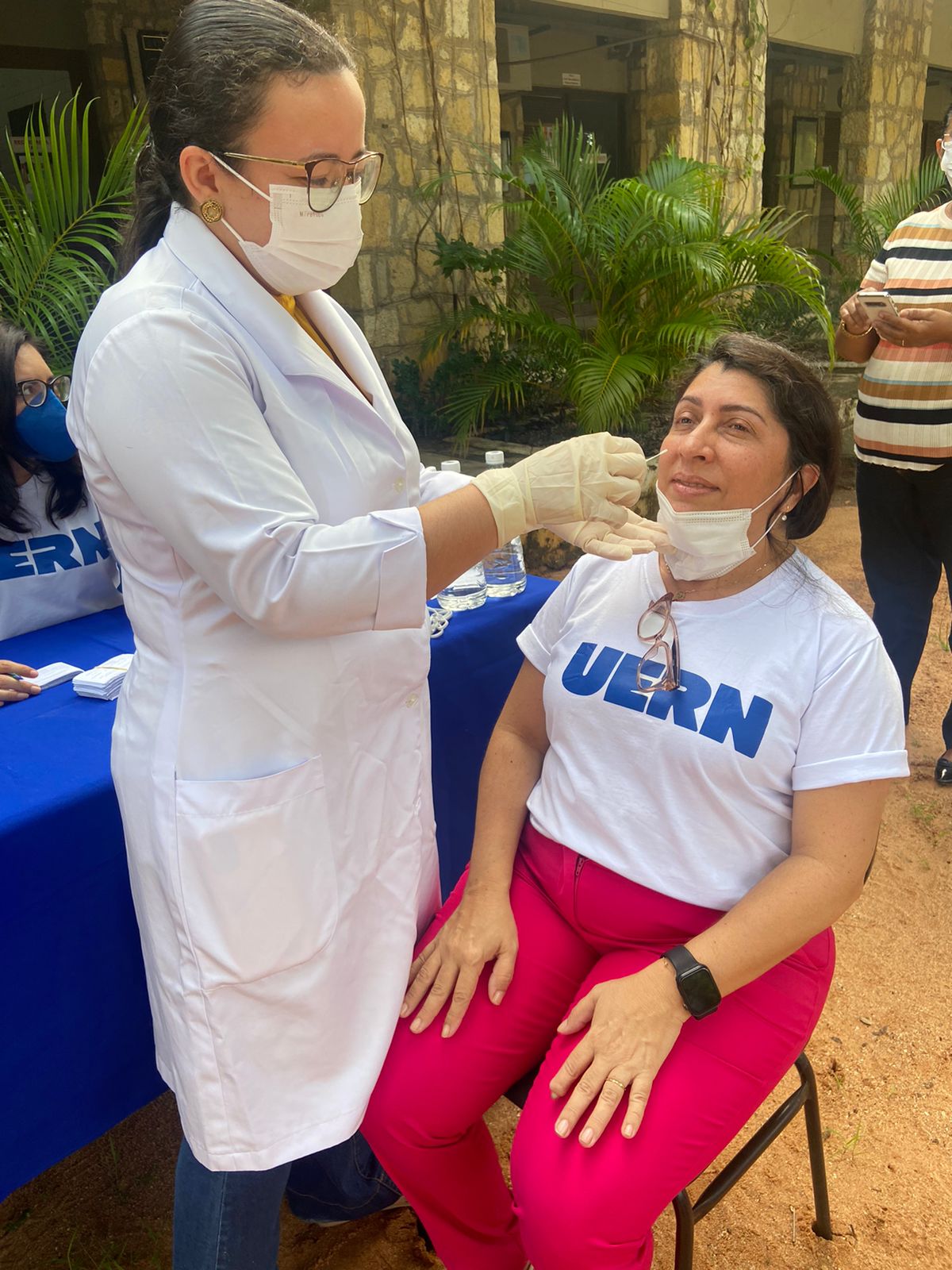 Caso o discente apresente ou entre em contato com alguém com sintomas, é possível solicitar agendamento do teste de covid-19, que pode ser realizado nos campus de Mossoró, Assú, Natal, Caicó, Patu e Pau dos Ferros. Em Mossoró a testagem ocorre na Faculdade de Ciências da Saúde (FACS/UERN).