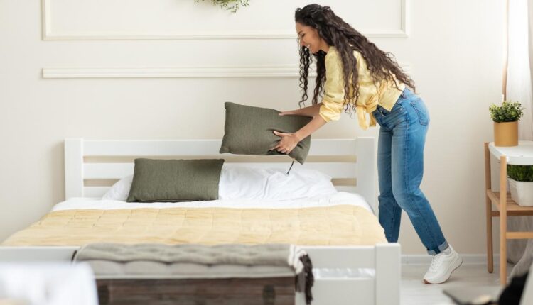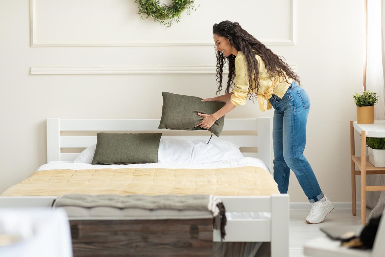 Uma cama de casal é confortável para os hóspedes, mas escolher uma cama funcional é importante para aproveitar ainda mais o espaço. Ter duas camas com colchões de solteiro, por exemplo, é uma escolha melhor, caso receba mais de uma pessoa na casa e eles não sejam um casal, garantindo mais conforto e flexibilidade.