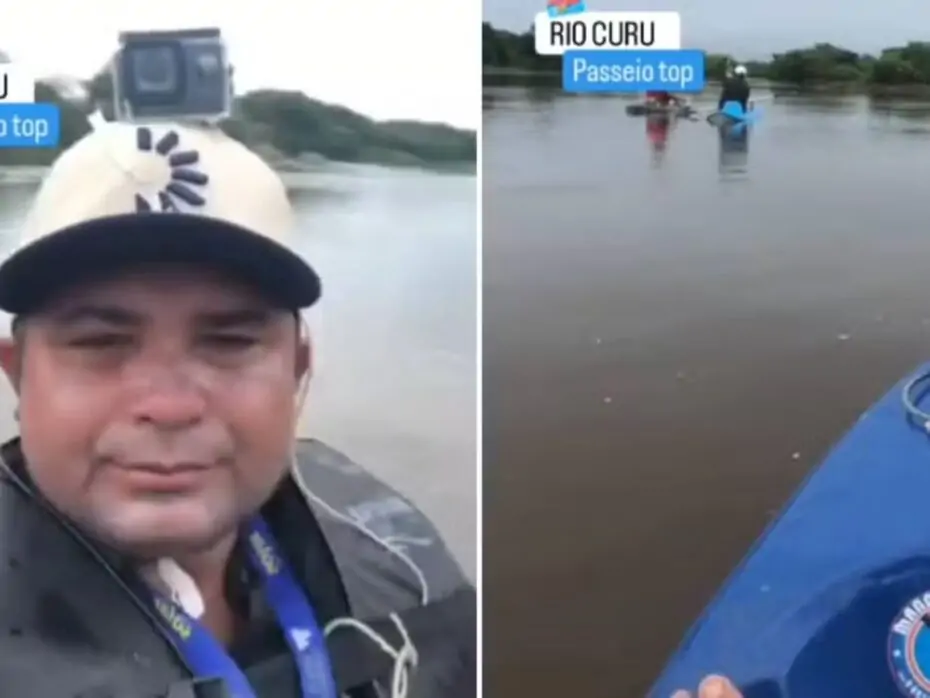 Nas imagens publicadas pelo vice-prefeito nas redes sociais, é possível notar que chovia durante o passeio e que o rio estava acima do seu nível normal.