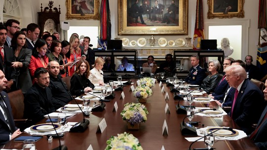 É a terceira vez que o ucraniano vai à sede do governo americano, em Washington D.C., para negociar com Trump um possível acordo de paz que dê fim à guerra de seu país com a Rússia, que começou em fevereiro de 2022.
